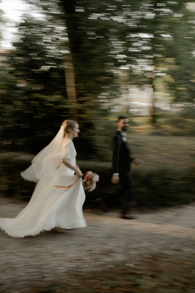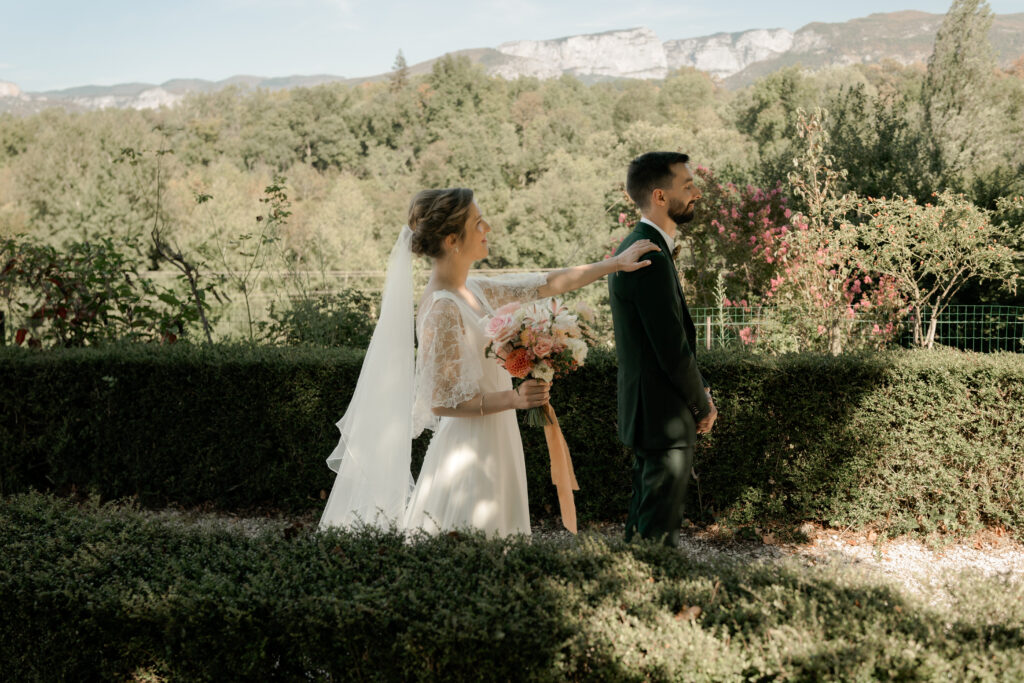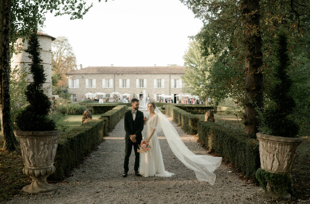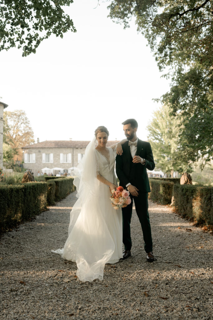 Il y a des mariages qui ressemblent à un murmure, à une page lumineuse que l’on tourne doucement. Celui de Pauline & Thibault en fait partie, une journée où la douceur avait le dernier mot. Pour son “oui”, Pauline rêvait d’une silhouette aérienne, presque intangible. Ensemble, nous avons imaginé une robe sur mesure, pensée comme un souffle : une jupe fluide, une taille délicatement marquée et, surtout, ces manches papillon qui se déploient à chacun de ses mouvements. De la dentelle, finement travaillée, qui flottait autour d’elle comme de petites ailes, apportant poésie et liberté à l’ensemble.